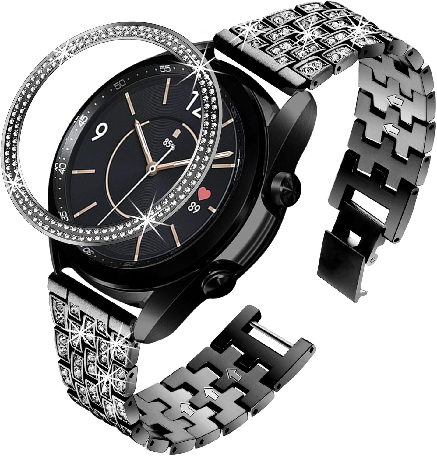 Buy Bekomo Bands Compatible Galaxy Watch 3 Band 45mm With Protective Bezel Women Men Bling Diamond Jewelry Strap Compatible For Samsung Galaxy Watch 45mm 46mm Gear S3 Frontier Classic Sport Black Online In Indonesia B08hv768lg